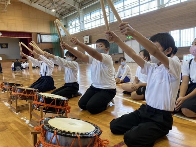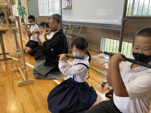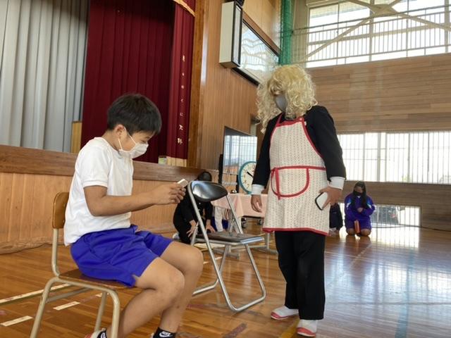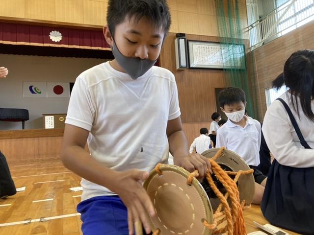 10月13日 「たかさごや〜」体育館に3年生から6年生までの声が響き渡ります。今日は、能楽を体験しました。とても楽しい時間でした。