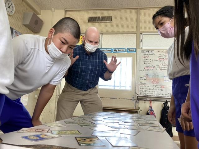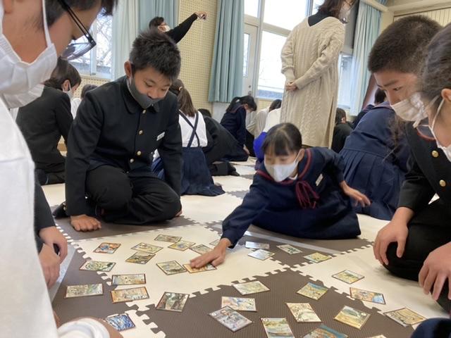 10月15日 休み時間に郷土カルタで盛り上がりました。11月の大会に向けて期待が高まりますね。