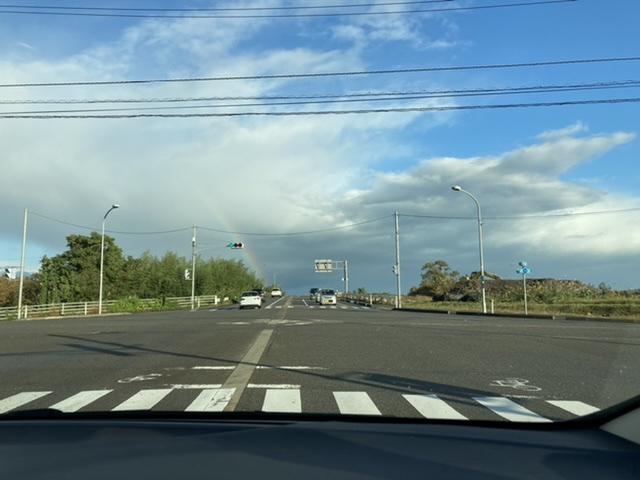 10月21日 信号待ちをしていたら、目の前に虹がかかっていました。今日も朝から、いいことがありそうです。(*ˊ˘ˋ*)