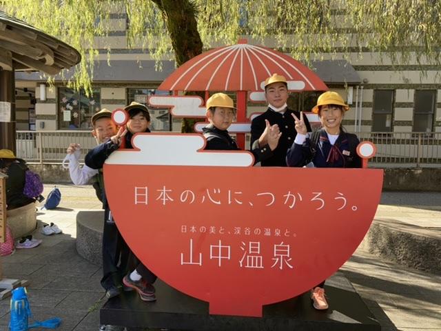 10月22日 バスに乗って社会見学に出かけました。高学年の行き先は、加賀温泉郷です。加賀の魅力をたくさん見つけてきました。