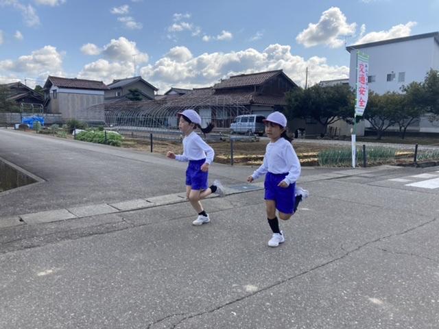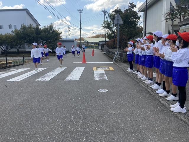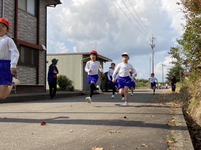 10月26日 マラソン大会に向けて練習しています。練習から本気でがんばることで、自分のがんばりタンクが大きくなります。仲間を本気で応援することで温かい心が大きくなります。