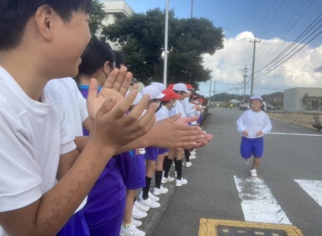 9月15日 今日は、全校でリレーを楽しみました。勝ったチームも負けたチームもすぐに作戦を立てていました。