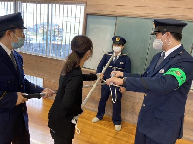 休み時間には、刺股の使い方を教えていただきました。