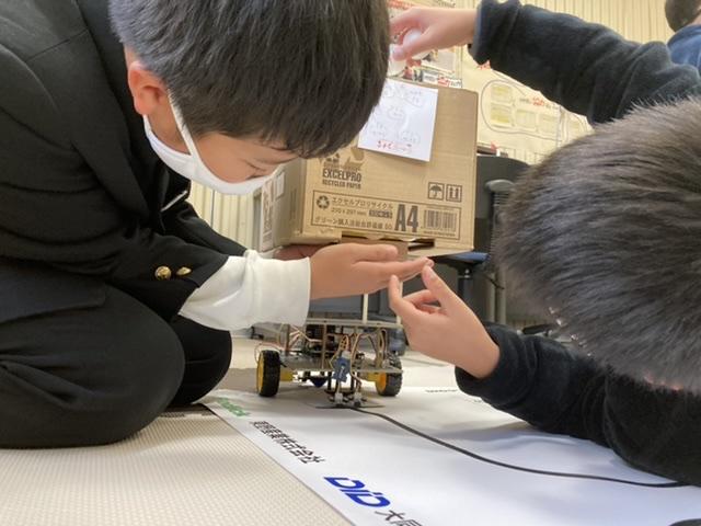 6年生では、micro bitを使ったロボットを作りました。このロボットできもだめしを企画しているそうです。