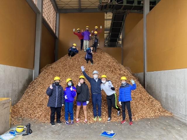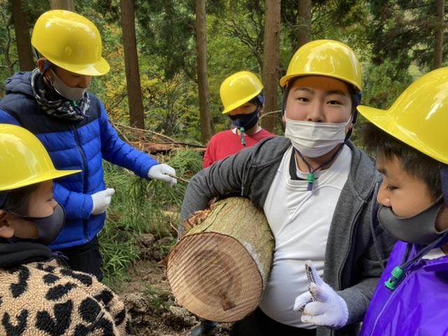 11月16日 森で木を切り、切った木を柱に成形し、出てきた端切れをチップにし、燃料として使う過程を体験してきました。