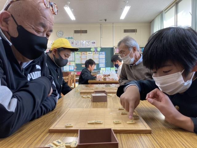 11月15日 真剣勝負が繰り広げられていました。ハサミ将棋を教えていただきました。とても楽しい時間でした。