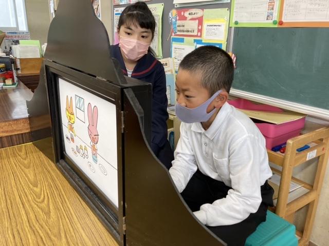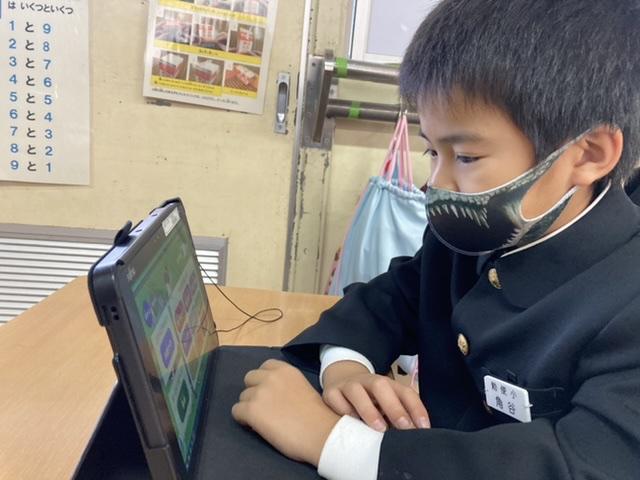 11月29日 低学年の教室を覗いてみたら、テストを終わった子がパソコンを使って勉強をしていました。