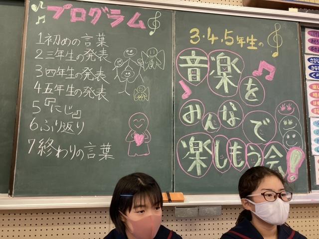 コロナの影響で行われなかった音楽会が、行われました。外はアラレが降っていましたが、音楽室には温かい虹がかかりました。