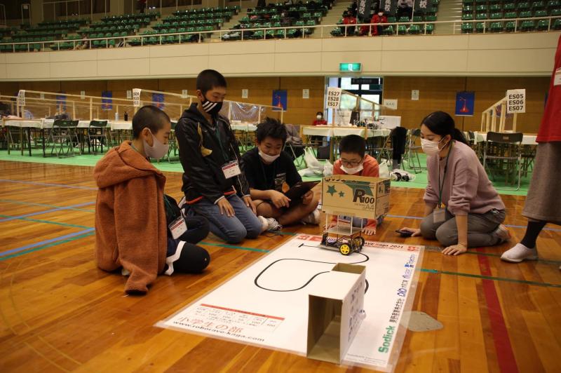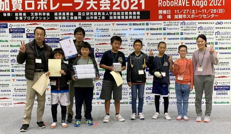 11月28日 加賀市スポーツセンターでロボレーブ大会が行われました。今年は、センサーでラインの色を見分けて玉を運ぶ競技(ラインフオロイング)に2チームが挑戦し、好成績を挙げました。
