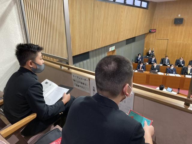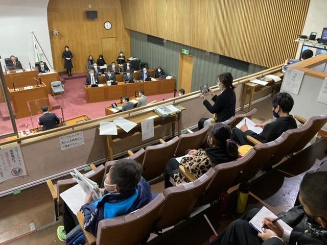 市議会を傍聴に行ってきました。市議会議員の方の質問、それに答える市長、司会を務める議長の役割や話し方を学びました。