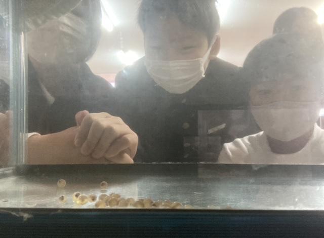 12月8日 ヤマメの赤ちゃんが産まれた!と職員室に子どもがやって来ました。