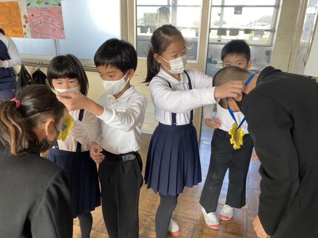 12月10日 ハッピー集会のお礼ということでメダルを作って持ってきてくれました。メダルをいただいた児童会のメンバーは、大喜びでした。