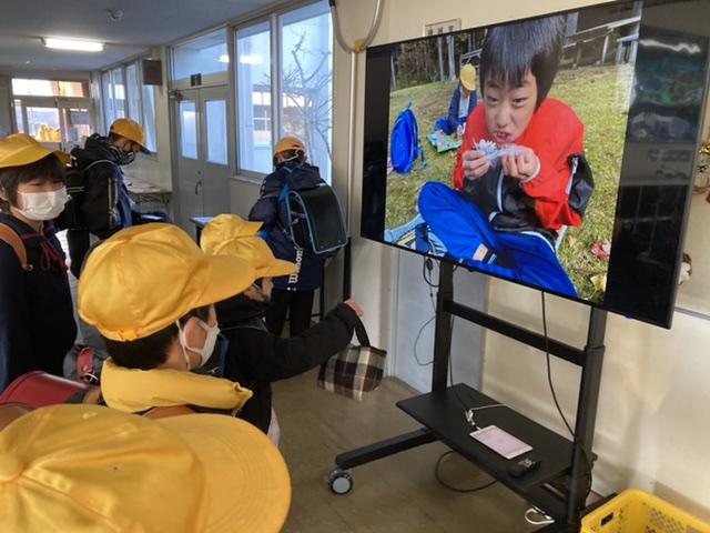 12月22日 玄関前に2学期の子どもたちの様子をスライドショーで放映中。コロナ禍で学校の様子をなかなかお伝えできないので、明日の通知簿わたしの際に、是非ご覧ください。