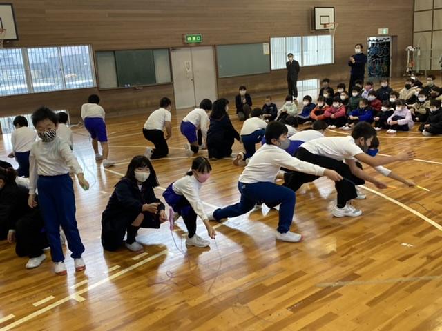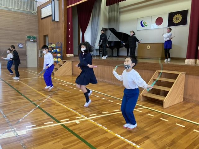 12月24日 2学期最後の日にジャンピングロープショーが行われました。音楽に合わせて、みんなで楽しく、なわとびを跳びました。
