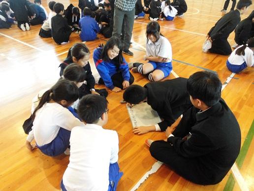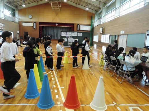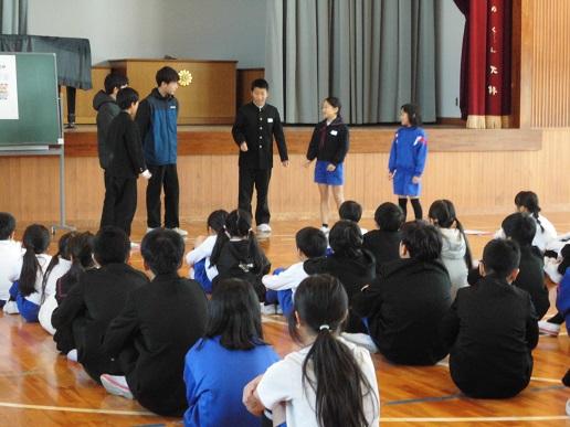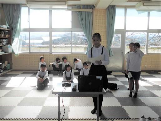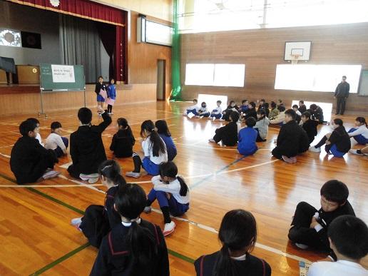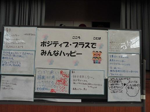 今日長休みに、児童会が計画・進行を務めて人権集会を行いました。今年度は「ポジティブプラスで、みんなハッピー」をテーマに、まず、児童会の劇(友達の発言に対して相手が嫌な思いをする態度や言葉を言う様子)を見て気になるところやこうしたらいい点をファミリーで話し合い、発表しました。その後、話し合ったことを意識してゲームをしました。最後の振り返りでは「相手を否定する言い方や嫌なことは言わないようにしたい。」「嫌な言い方に気を付けるだけでなく、相手が喜ぶ言い方もしていきたい」という意見が出ていました。全校が、相手を思いやる気持ちで話したり行動したりすることで、みんなが笑顔になれる学校が作れますね。
