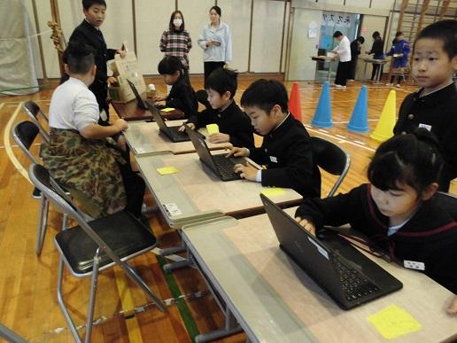 5年生が総合の学習で学んだことを生かして、米フェスタを企画し、この日の長休みから3限目に全校児童を招待してくれました。4種類のお米の食べ比べコーナー、米ゲームコーナー、お米のキャラクターのしおりやキーホルダーの配布コーナーやお米キャラクターとの記念撮影コーナーの4つのコーナーがありました。いろいろなアイデアのある米フェスタを全校みんなが楽しむことができました。