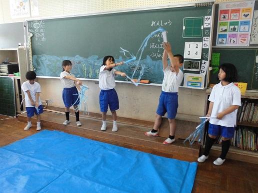今日の5限目に先生方を招待して発表会をしました。音楽で学習した「うみ」という曲を、なりきりグループ(海の中のものになり切って表現)、波グループ(波の動きを表現)、砂グループ(砂に寄せる音を表現)の3つに分かれて、グループで表現方法を話し合い工夫しました。最後には3グループの合同発表を行いました。参観された先生方からも「工夫が良かった」「海らしさがでていた」とほめてもらい、子ども達も満足そうでした。