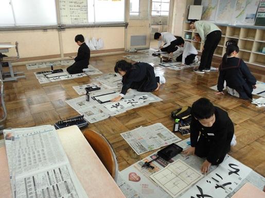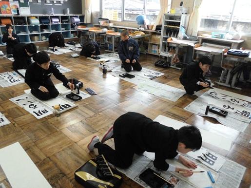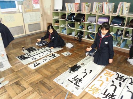 始業式後は各クラスで書き初めを行いました。冬休み中の練習の成果を発揮しようと、みんな集中して取り組んでいました。