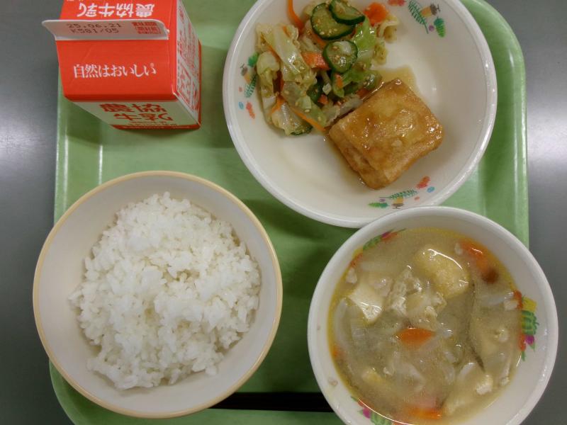 <揚げだし豆腐、やさいのピリ辛、めった汁>