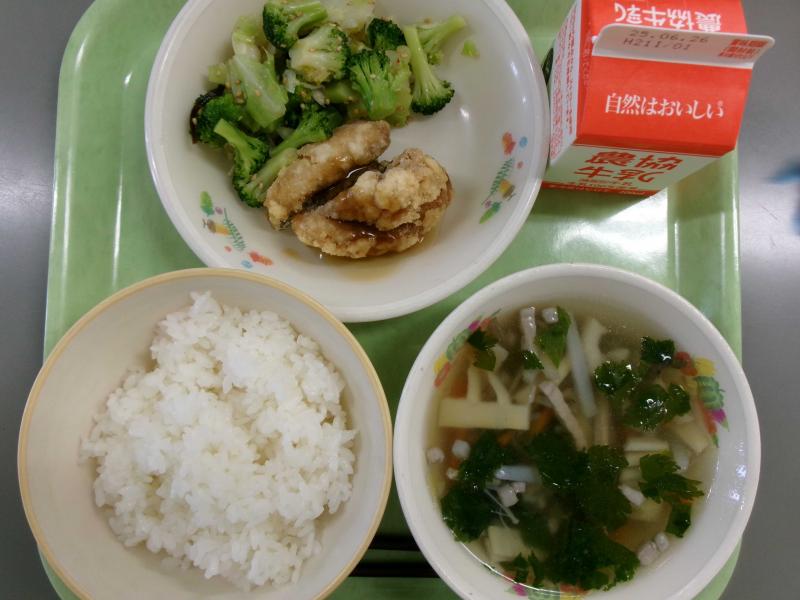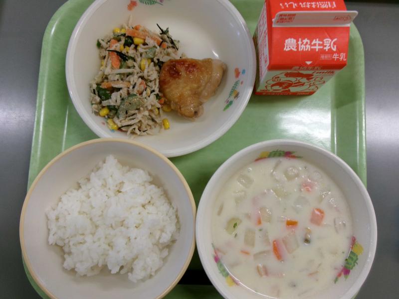 <照り焼きチキン、切干大根とひじきのサラダ、クラムチャウダー>