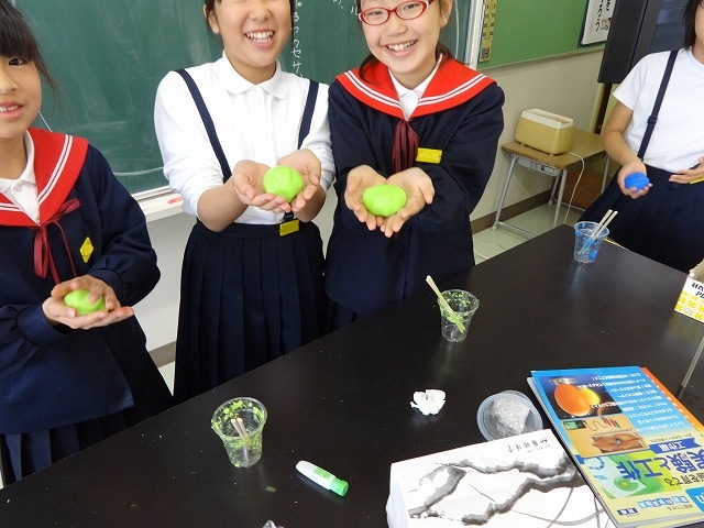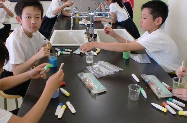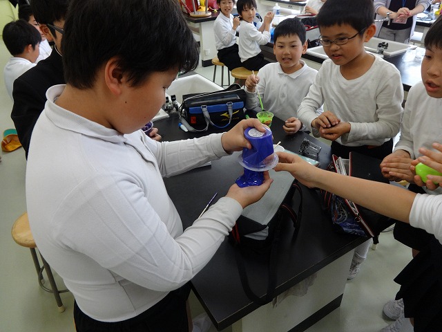 5月21日第1回理科クラブの開催です。 子ども達のリクエストで、今回は年間の計画とスライムづくりでした。 クラブ長を中心に、しっかりと進めてくれました。 さて、スライムですが、いろんな色のものを作っていました。 最後の魔法の水(飽和ホウ砂水溶液)を何ミリリットル入れたら、 いいのだろうかということで、量も考えながら、自分なりのスライムを作っていました。 片付けも上手でした。一年間科学をして、楽しみましょうね。
