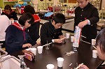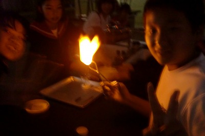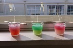 第9回 科学クラブがありました。 9回目は キャンドルづくりをしました。 材料は サラダ油、テッシュペーパー(よじって、しんにする)、クレヨン 油固め剤、アロマオイル、わりばし、紙コップ、ガラスの容器などです。 やかんに油を入れ、90度くらいになったら。油固め薬剤と、クレヨンを入れた 紙コップに注ぎ、ガラスの容器に流し入れます。やかんを使うと汚れず、やけどしにく かったのでおすすめです。 それぞれ思い思いの色のキャンドルをつくることができました。 時間に余裕のある時は2段、3段重ねに挑戦してもらいたいです。