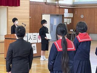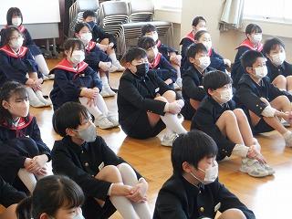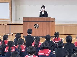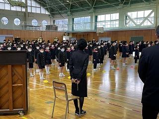 生徒指導からは、安全に気を付け、規則正しく生活し、来年度よいスタートができる準備をしてほしいと、春休みの過ごし方について話がありました。