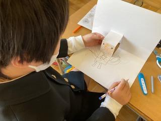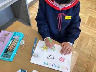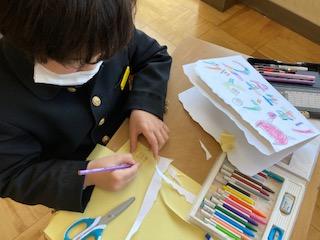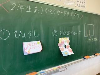 3月22日(水)2年2組の子ども達が、1年間の思い出や自分の頑張りをカードに綴じようと、2年生のまとめの学習「ありがとうカード」を作っていました。楽しかった2年生なので、たくさん書きたいことがあるようで、どの子も一生懸命に取り組んでいました。