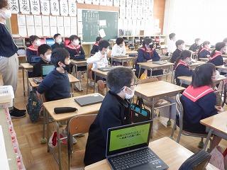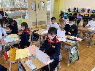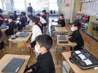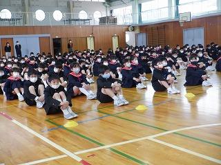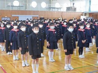 3月24日(金)3限目に、3~5年生が体育館に集合し、1・2年生はリモートで修了式を行いました。会場は別でしたが、全校児童で元気に校歌を歌い、式が始まりました。