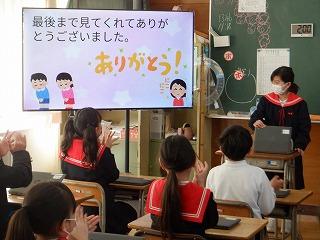 3月22日(水)4年2組の子ども達が、総合の学習で作成した10年史のプレゼン発表を行い、最後に友達に感謝の気持ちを伝えていました。どの子も「楽しかった!」「ありがとう!」「またこのメンバーで勉強したい!」など、今年1年なかよく協力して過ごした充実感が伝わる言葉で感謝の気持ちを伝えていました。クラスみんなで成長できた1年だったから、楽しい思い出がたくさんできましたね。