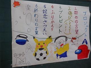 3月23日(木)5年生が「プロジェクトA」と名付けたお別れ会を企画し、1組2組合同で楽しみました。級外の先生方も招待され、今年1年頑張ったみんなでドッチビーとバレーボールを楽しみました。企画・進行・準備共に自分たちで考え行動し、楽しい会ながらも、ピリッと引き締まった会となり、至る所で5年生の成長を感じました。