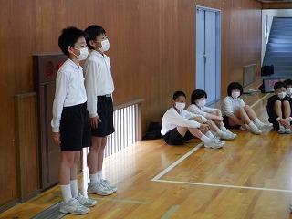 学校長からは、全児童が今年度の課程を修了し、一人一人が頑張り身に付けた力と学年として成長できた姿について話があり、進級できることが伝えられました。聞いている子ども達は、1年の成長を感じさせる立派な姿で話を聞いていました。