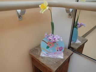 お花ボランティアの中西さんが、春の訪れを感じる花を生けてくださいました。修了式を迎える子ども達へのお祝いのお気持ちを感じます。今年も1年間、心を癒すお花を生け続けていただき、ありがとうございました。
