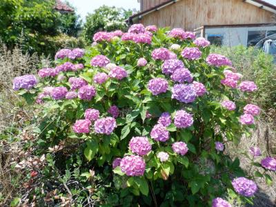 歩いているとちゅうに、きれいなあじさいがさいていました。