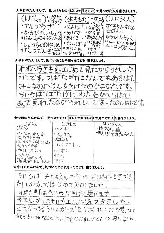 たくさんの「ばしょ」「生きもの」「はたらく人」をはっけんすることができましたね。