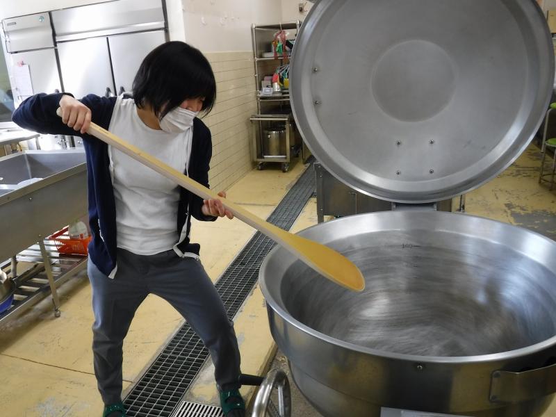 こたえは すぱてら でした。きゅうしょくを つくるときに つかうよ。やさいを いためるときや かれえをまぜるときに つかうよ。すぱてらを つかって まいにち 425にんぶんの きゅうしょくをつくります。