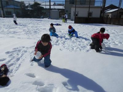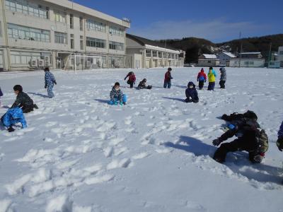 1月31日(火)たくさんの雪が積もったので、「冬」を感じようと生活科で外に出た1年1組の子ども達。つららを見つけたり、雪がきらきら輝いているのを見つけたりしました。全身で雪を感じながら、元気いっぱいに遊んでいました。