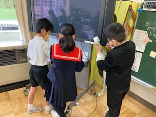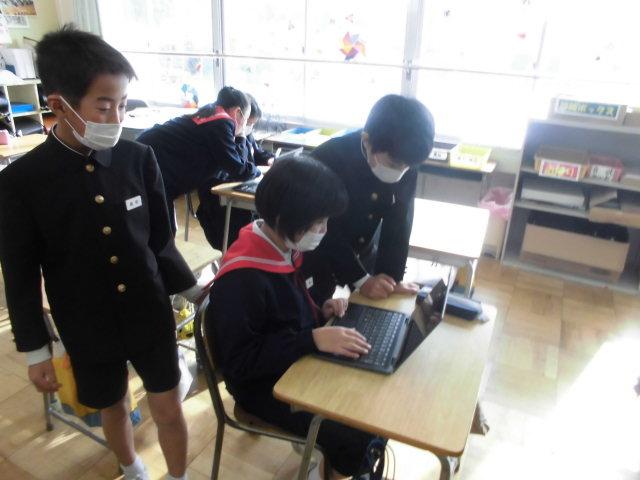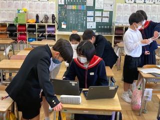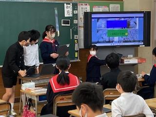 3月13日(月)4年生が、PCサポーターに教えてもらいながら、スクラッチでゲームを作っていました。子ども達は、自分の思い描いたゲームにしようと、どの子も進んでプログラミング操作に取り組んでいました。