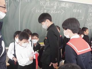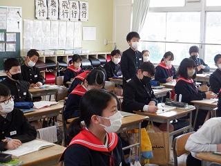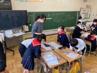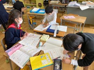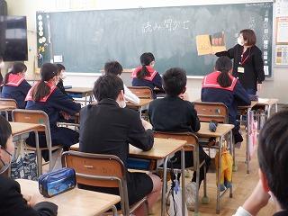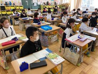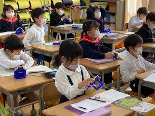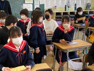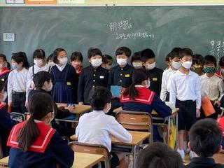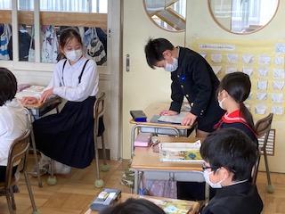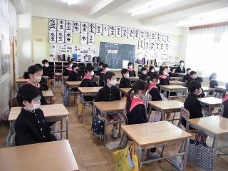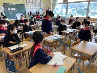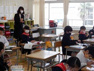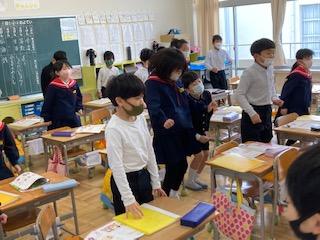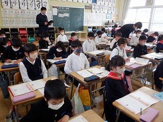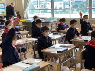 3月2日(木)5限目、2年2組の子ども達が、3年2組の授業を参観しました。子ども達は、3年2組の参観ポイント「ベル学・声の大きさ・伝わっているか確認」の3つのめあてを守って真剣に学ぶお兄さんお姉さんの姿に、刺激を受けているようでした。