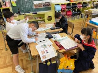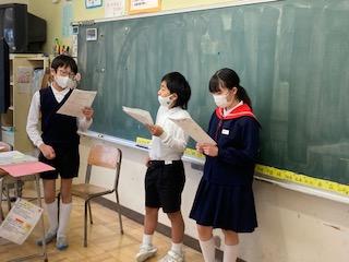 先週、3年2組の子ども達が、「私たちの学校じまん」をテーマに作成した原稿をもとに、グループで発表練習をしていました。常に「相手に伝わる発表にする」という目的意識と相手意識をもって取り組んでいるので、子ども達の意欲がどのグループからも感じられました。