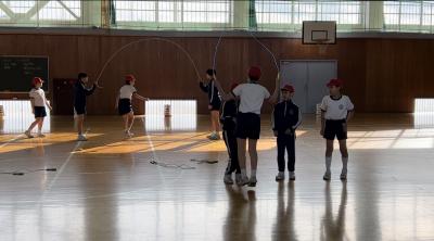 4年生は、体育の「多様な動きをつくる運動」の単元で、グループで曲に合わせたなわとびの表現運動に取り組みました。その成果を発表するため、2月2日(木)なわとび発表会を行いました。発表会では、実行委員が準備・進行をしました。