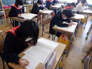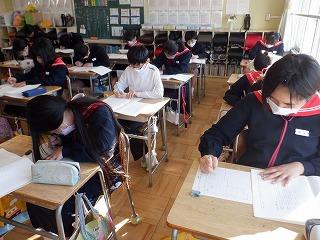 2月7日(火)1・2限目に、3年生が国語と算数の町学力実態調査に挑戦しました。初めて町の学力調査にチャレンジした3年生。たくさんの問題があり、説明を求められる難しい問題もありましたが、どの子もあきらめずにしっかりと最後まで取り組んでいました。