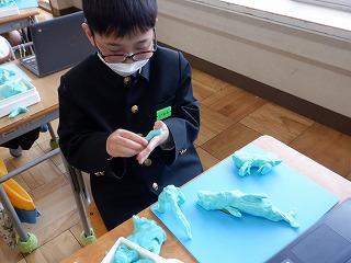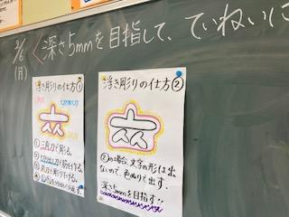 4年1組の子ども達が、2月14日(火)の図工の時間、彫刻刀の使い方を確認した後、早速小丸刀を使って彫っていました。どの子も、ダイナミックな下絵をもとに、自分のイメージした感じが出るようにと、慎重に真剣に取り組んでいました。どんな作品ができあがるか、今から楽しみです!