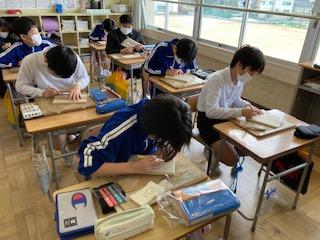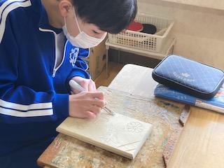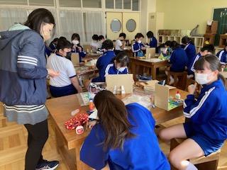 2月6日(月)6年2組の子ども達が、卒業製作となるオルゴール作りに取り組んでいました。どの子も、6年間の思い出と卒業の記念になる作品にしようと、絵柄や文字に心をこめて作っていました。