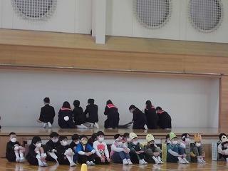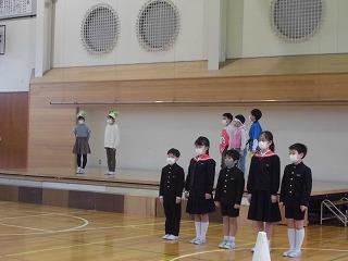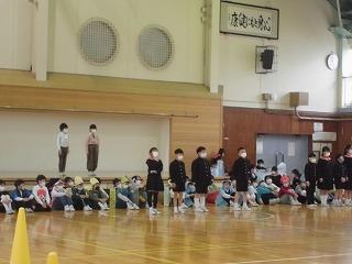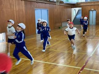 2月6日(月)1年生が、体育館でランニングをしていました。この後の運動のウォーミングアップを兼ねてのランニングでしたが、2学期のマラソン記録会での練習を生かして、どの子も最後まで笑顔で走り続けていました。たくましい1年生に成長して、嬉しい姿でした。