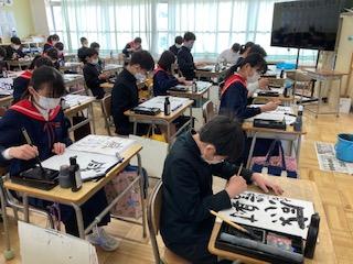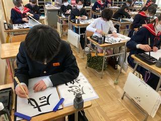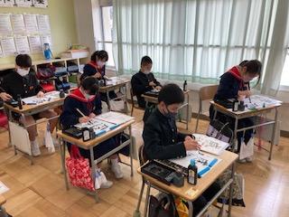 2月6日(月)6年1組の子ども達が、毛筆で「感謝」の文字を書いていました。卒業を前に、感謝したい人を思いながら書いているかのように、一人一人とても良い表情で書いていました。丁寧に書かれた文字からも、感謝の気持ちが伝わってくるようでした。