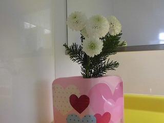 花ボランティアの中西さんが、一輪挿しの飾りを変えてお花を生け代えてくださいました。かわいい花と飾りに春の訪れを感じます。いつもありがとうございます。