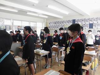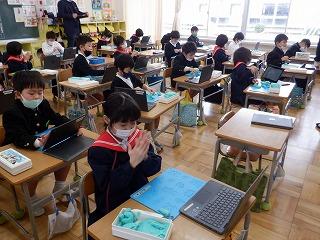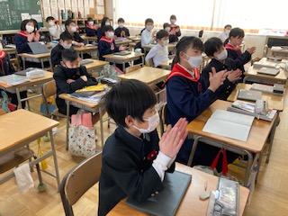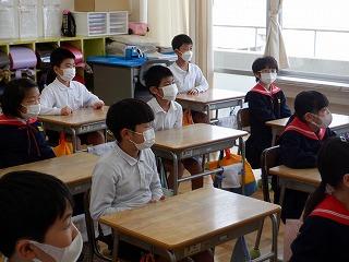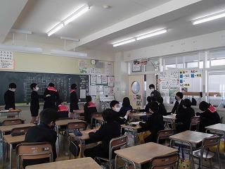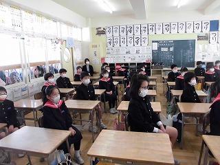 コロナ感染防止のため、当日は5・6年生のみの参加となるので、1~4年生にとっては、予行練習が本番でした。どの学年の子ども達も、背筋を伸ばし、6年生が卒業証書を授与する姿をしっかりと見ていました。教室でリモートでの参加となりましたが、礼儀を持って臨んでいる姿がとても素敵でした。