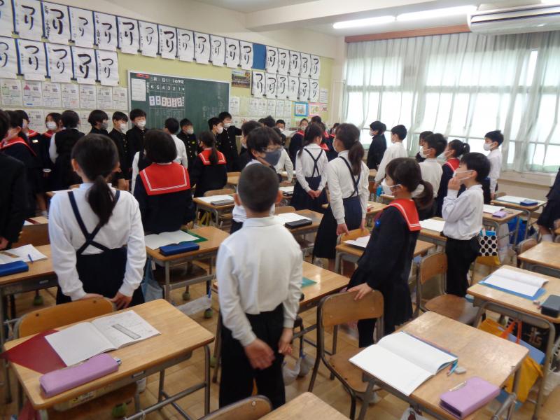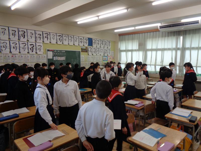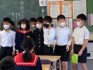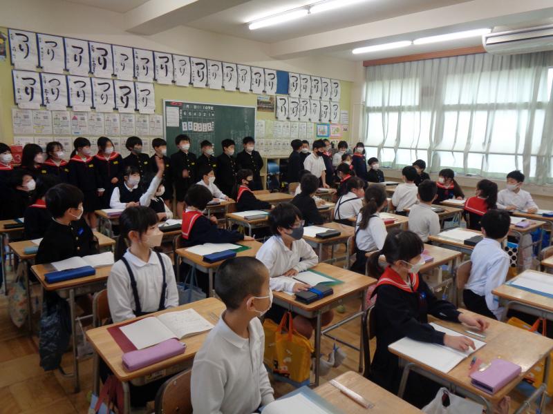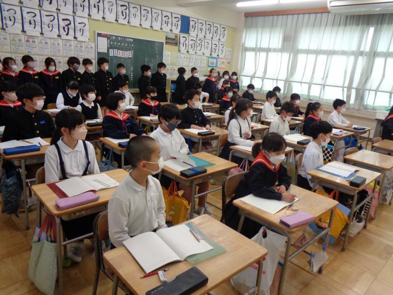 教室に戻ってからの振り返りでは、「授業の準備が全員できていて、ぼくたちも見習いたいです。」「みんなに聞こえる声で発表していました。」「全員、反応の声が揃っていて良かったです。」と、次の学年に繋がる目標の姿を発表していました。