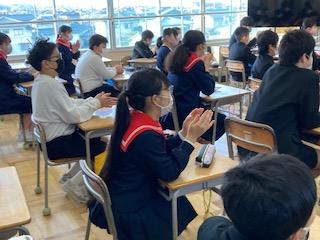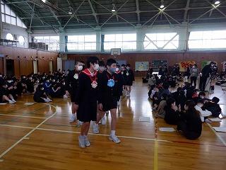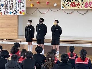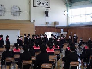 生徒指導からは、安全に気を付け、規則正しく生活し、来年度よいスタートができる準備をしてほしいと、春休みの過ごし方について話がありました。